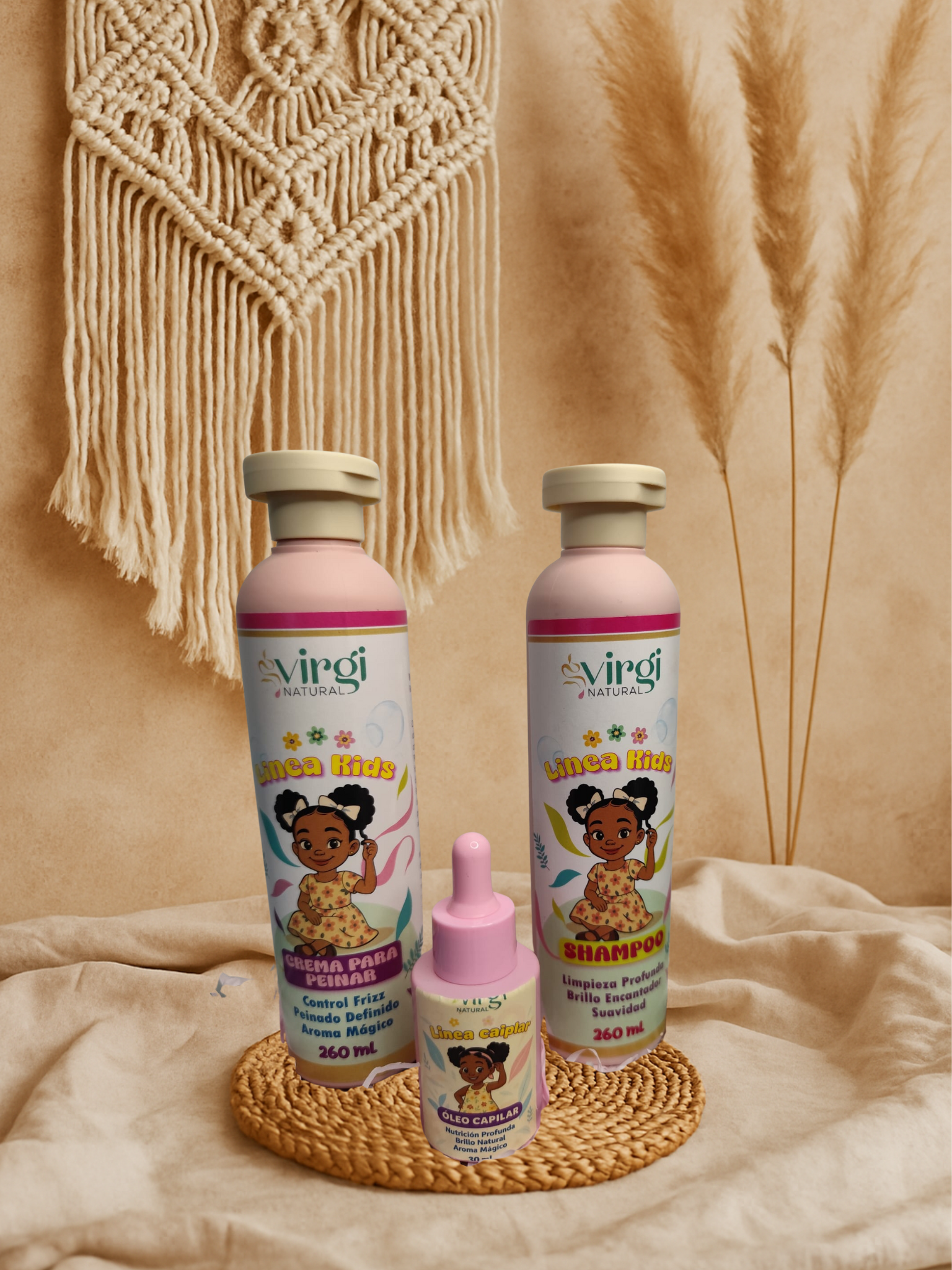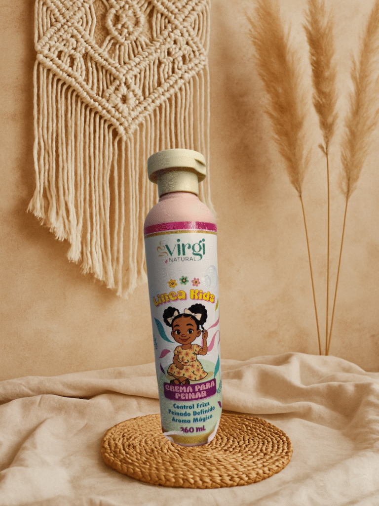 Kit Capilar Virginatural Kids Cuidado natural y suave para el cabello rizado infantil. Hidrata, define y desenreda sin químicos agresivos. Incluye: champú, crema para peinar y óleo humectante.